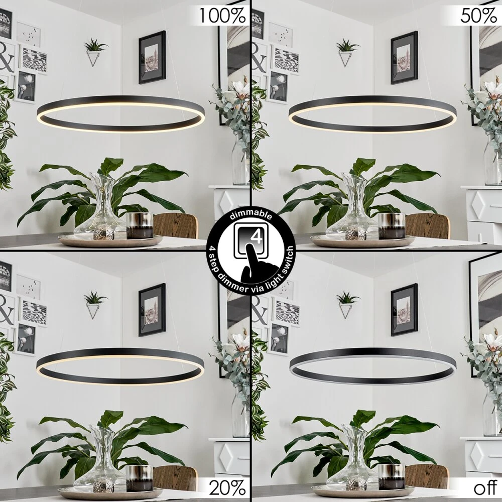 Zudem ist diese Leuchte mithilfe eines herkömmlichen Lichtschalters in vier Stufen dimmbar. Es ist kein zusätzliches Zubehör nötig.