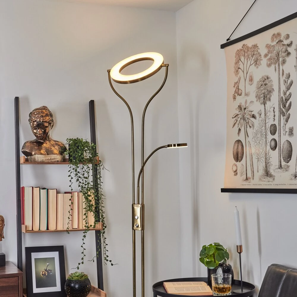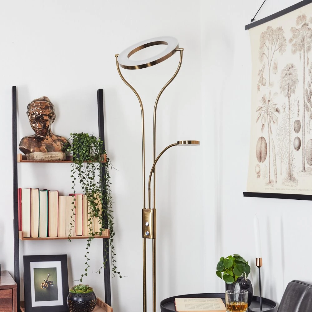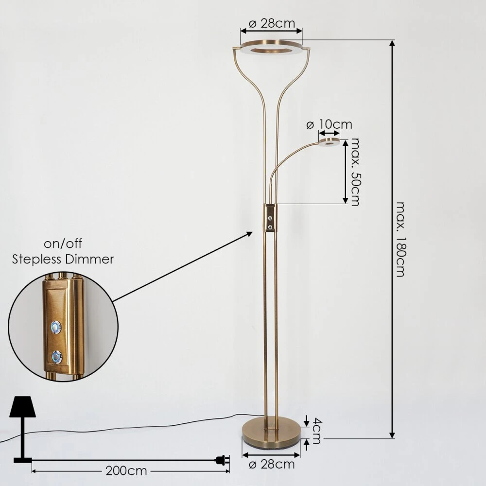 Diese Stehleuchte verfügt über einen An-/Ausschalter am Gehäuse, sowie einen Tastdimmer.