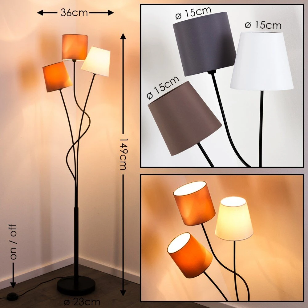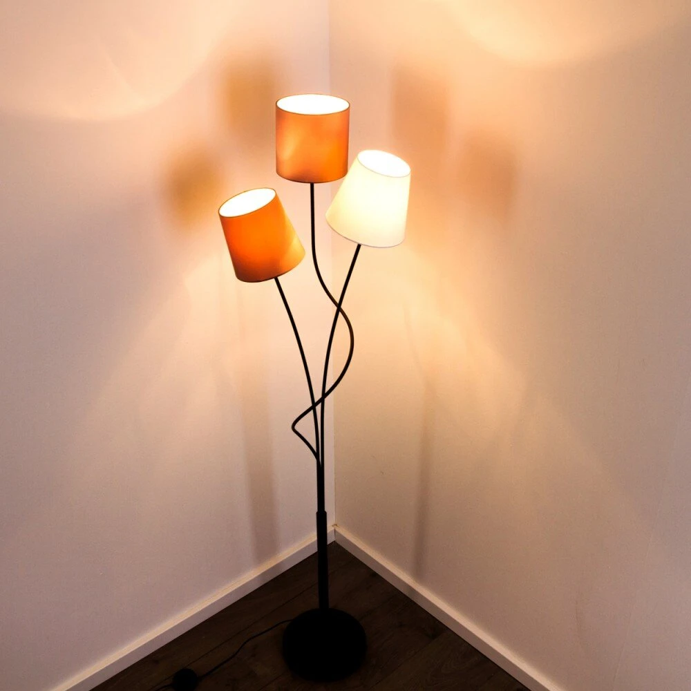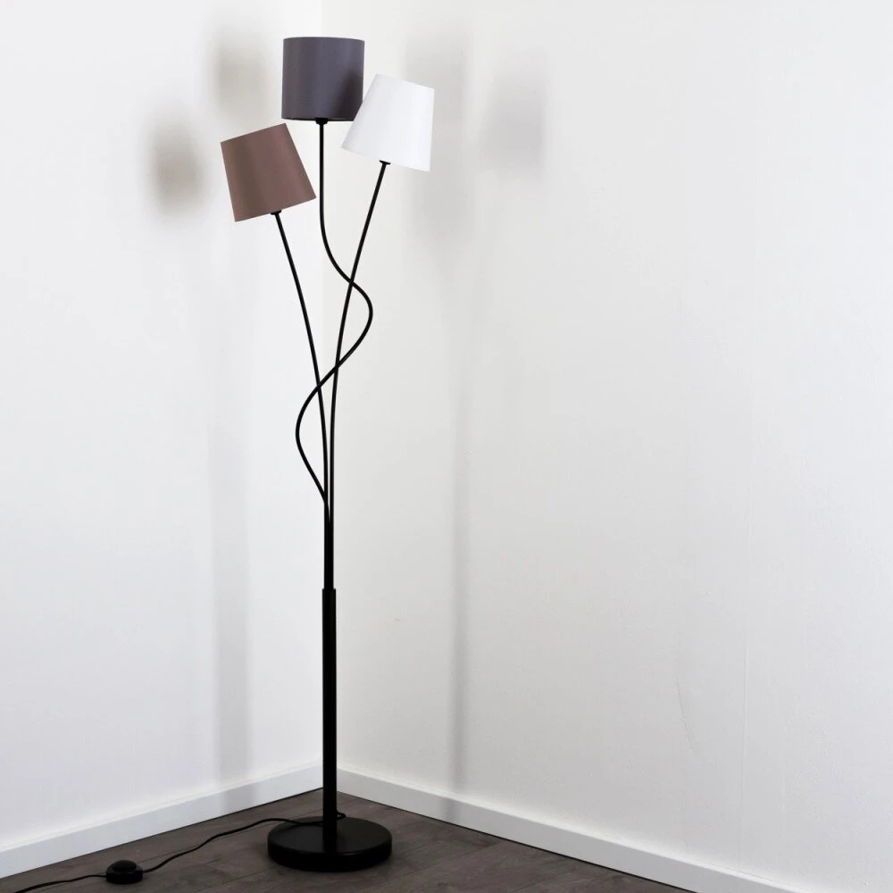 - Diese Leuchte verfügt über drei Schirme in unterschiedlichen Farben.