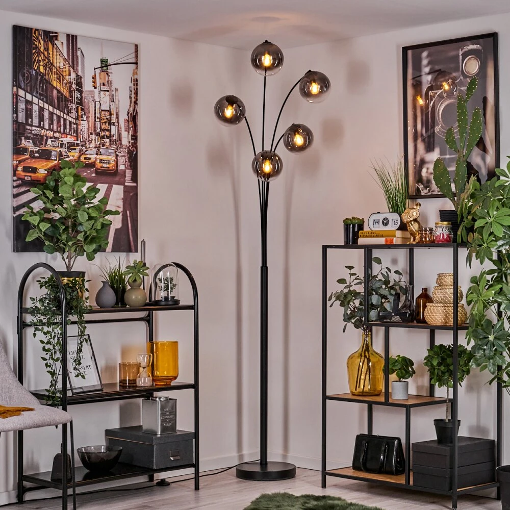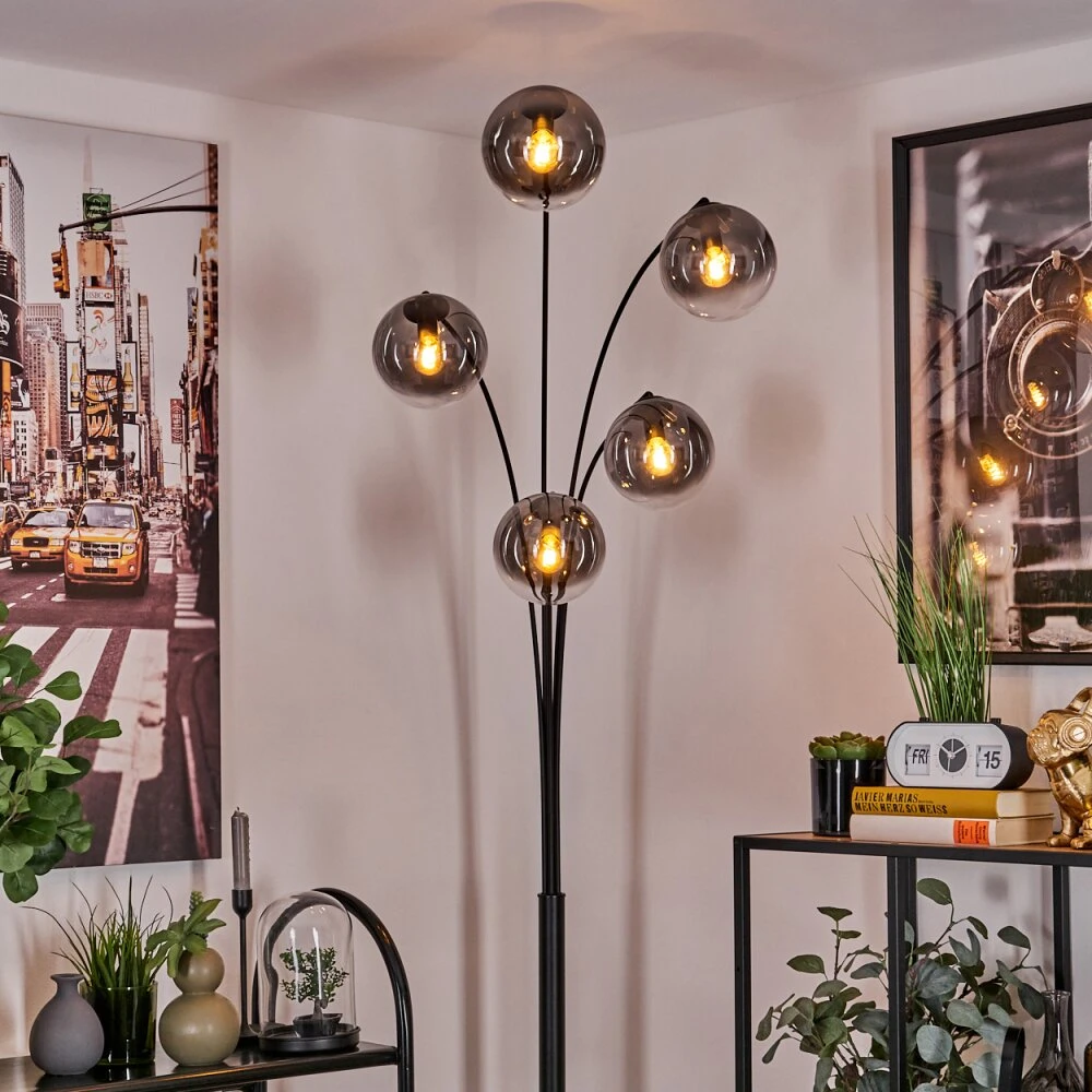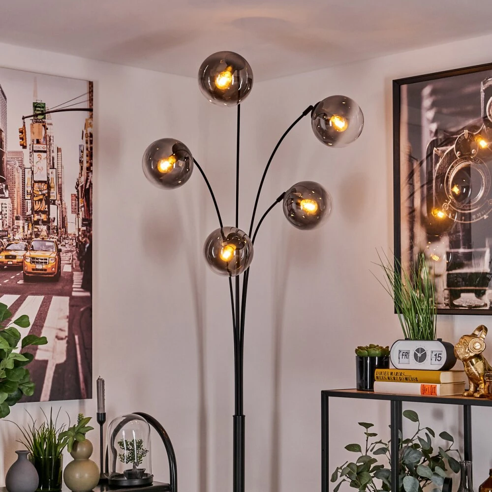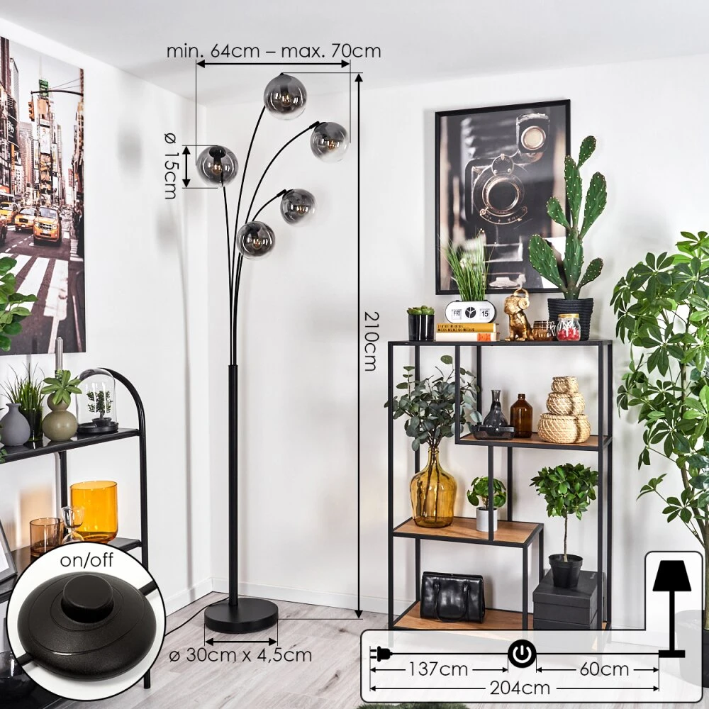 - Besonderheiten: Diese Stehleuchte verfügt über einen Fußschalter am Kabel. Die Länge des Kabels beträgt 204 cm. Zusätzlich sind die Leuchtarme beliebig verstellbar.