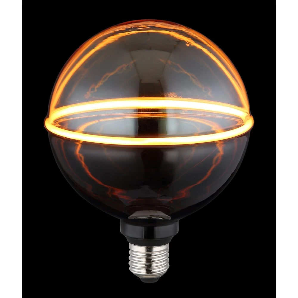 - Das LED-Leuchtmittel GLOBE in Kugel-Form bietet eine besonders stimmungsvolle Beleuchtung und sorgt für eine warme, einladende Atmosphäre. Mit einem Durchmesser von 128 mm ist es ein wahres Highlight in jeder Leuchte. Der Korpus aus Glas in Amber-Rauchfarben und das edle Aluminium in Nickel matt verleihen diesem Leuchtmittel einen eleganten und modernen Look. Der Schirm aus schwarzem, mattem Kunststoff rundet das Design ab und sorgt für eine sanfte Lichtstreuung. Mit einer Lichtleistung von 100 Lumen und einer besonders warmen Farbtemperatur von 1800 K schafft es eine gemütliche Beleuchtung, die perfekt für Entspannungsbereiche oder als Akzentbeleuchtung geeignet ist. Das LED-Leuchtmittel ist mit einer E27 LED-Fassung ausgestattet und sorgt für eine lange Lebensdauer und Energieeffizienz. Inklusive E27 LED. Dieses GLOBE LED-Leuchtmittel kombiniert modernes Design mit behaglichem Licht.