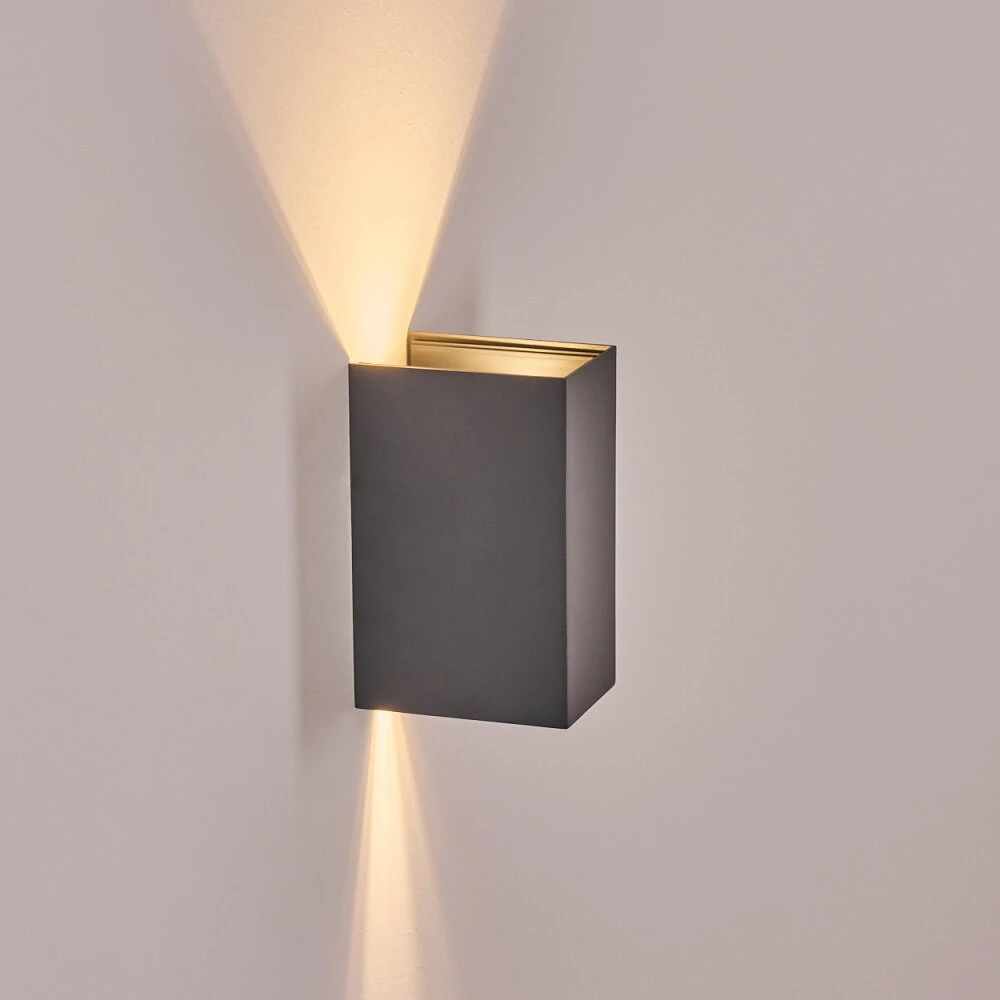 - Besonderheiten: Durch die offenen Enden wird ein Up & Down Effekt an der Wand erzeugt. Der Effekt lässt sich individuell durch die austauschbaren Platten ändern.