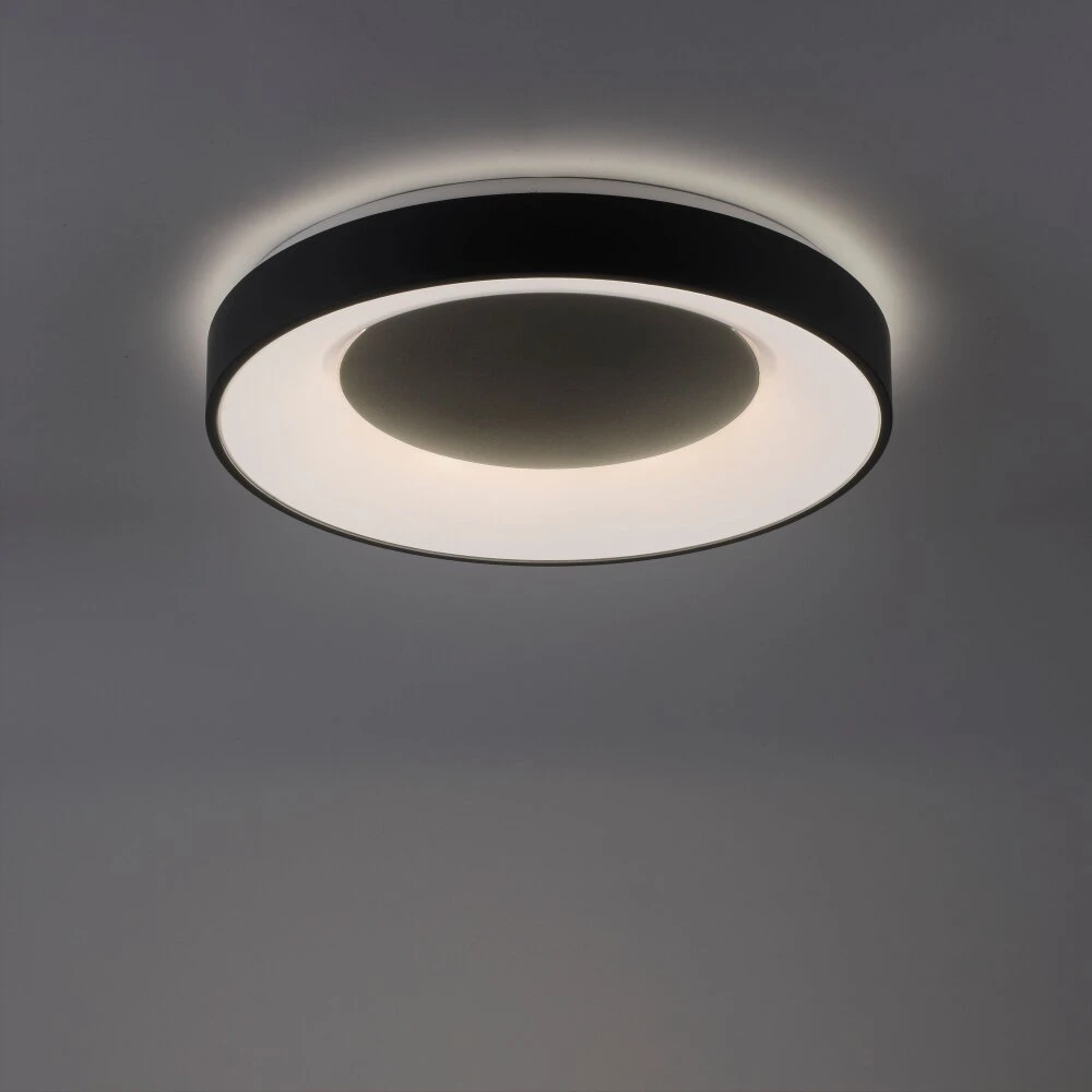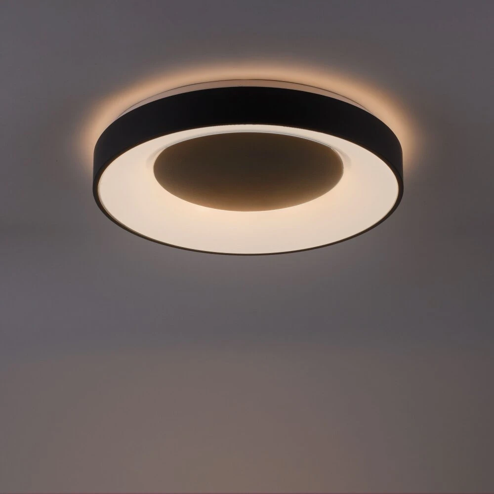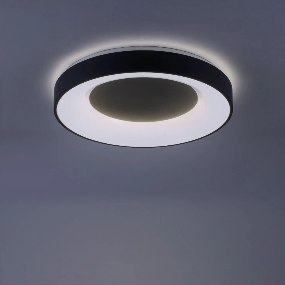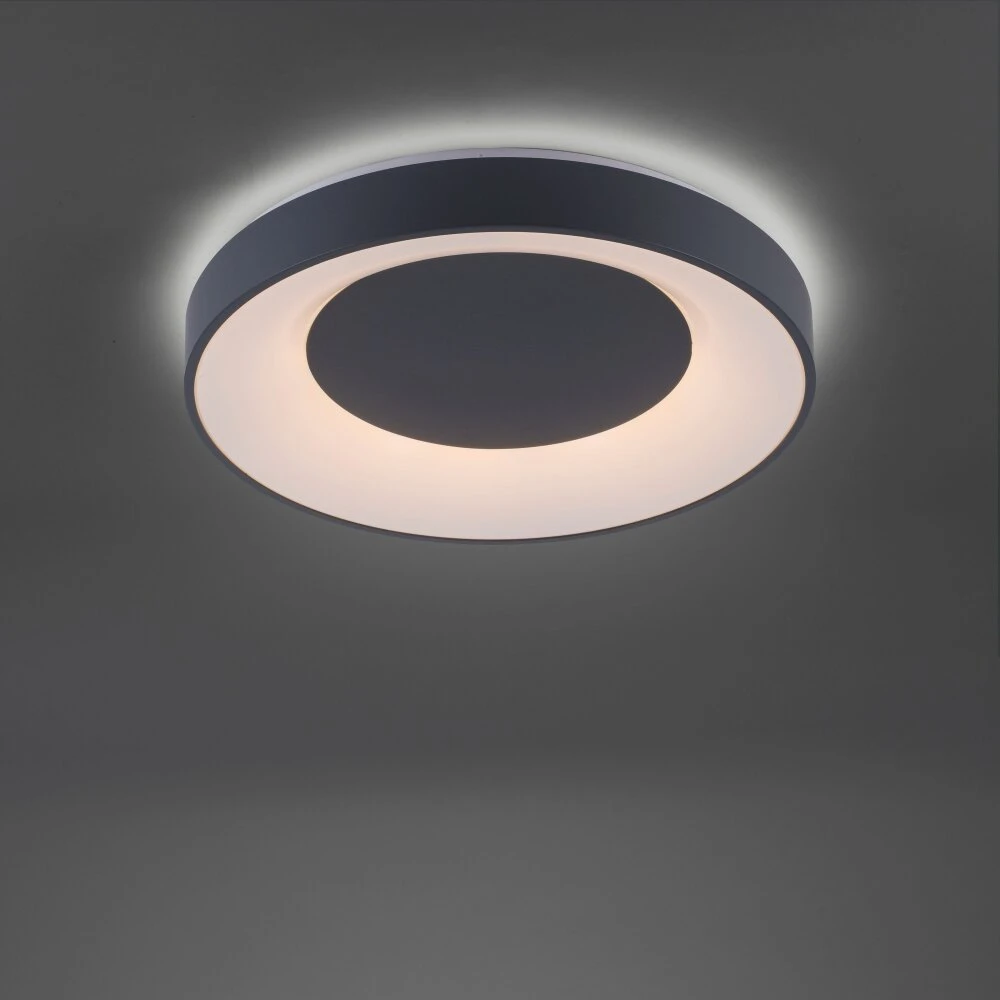- Die anthrazitfarbene LED-Deckenleuchte LOLAsmart-ANIKA besticht durch ihr zeitloses Modern und der smarten Funktionalität. Die runde Leuchte wird mit der LOLA-Infrarotfernbedienung geliefert, welche sofort einsatzbereit ist. So können Sie die Farbtemperatur des Lichts von warmweiß (2.700 Kelvin) bis tageslichtweiß (5.000 Kelvin) individuell steuern und die Lichtfarben eines Tagesablaufs simulieren. Neben der Tageslichtregulierung und der Helligkeitseinstellung ist das Leuchtmittel ebenso in den Farben RGB zu schalten, welche es ermöglichen, einzelne Lichtmodi wie Kaminfeuer oder Sonnenuntergang nachzubilden. Über die Memory Funktion kann die gewünschte Einstellung abgespeichert werden. Die Deckenleuchte enthält ein festverbautes LED Board mit rund 30,00 Watt. Durch die weiße Kunststoffabdeckung gibt die Leuchte ein angenehmes Licht wieder und ist deshalb besonders gut in Küchen, Fluren oder Arbeitszimmern einzusetzen. Die Leuchte ist auch smarthomefähig und bietet somit noch mehr Vielseitigkeit. Mit der passenden App (MEDION LIFE+) können alle Funktionen auch per Tablet oder Smartphone bedient werden oder man hat einen Sprachassistenten z.B. Amazon Alexa oder Google Home über den man die Einstellungen kinderleicht per Sprachbefehl verändert. Die Leuchte hat einen Durchmesser von 50 cm und ist 8,7 cm hoch.