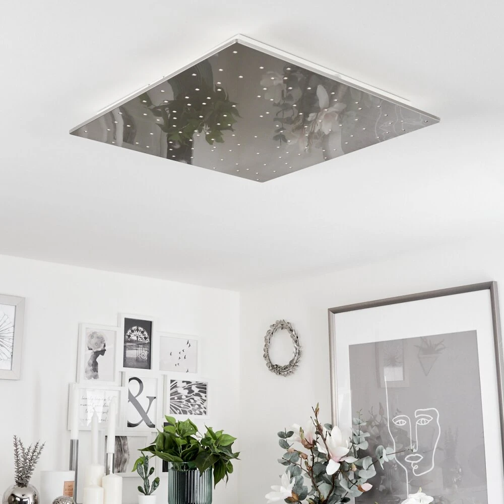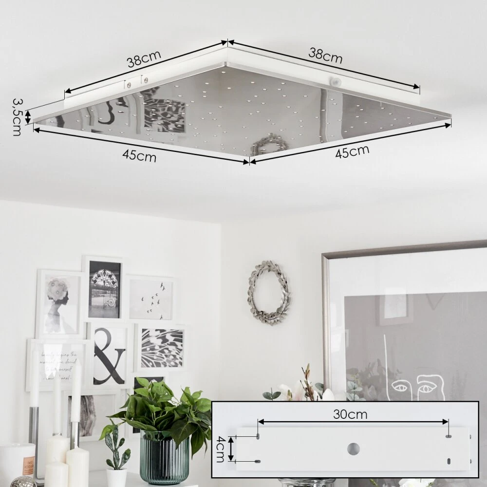 - Mithilfe einer beiliegenden Fernbedienung kann die Leuchte gedimmt und die Lichtfarbe geändert werden.