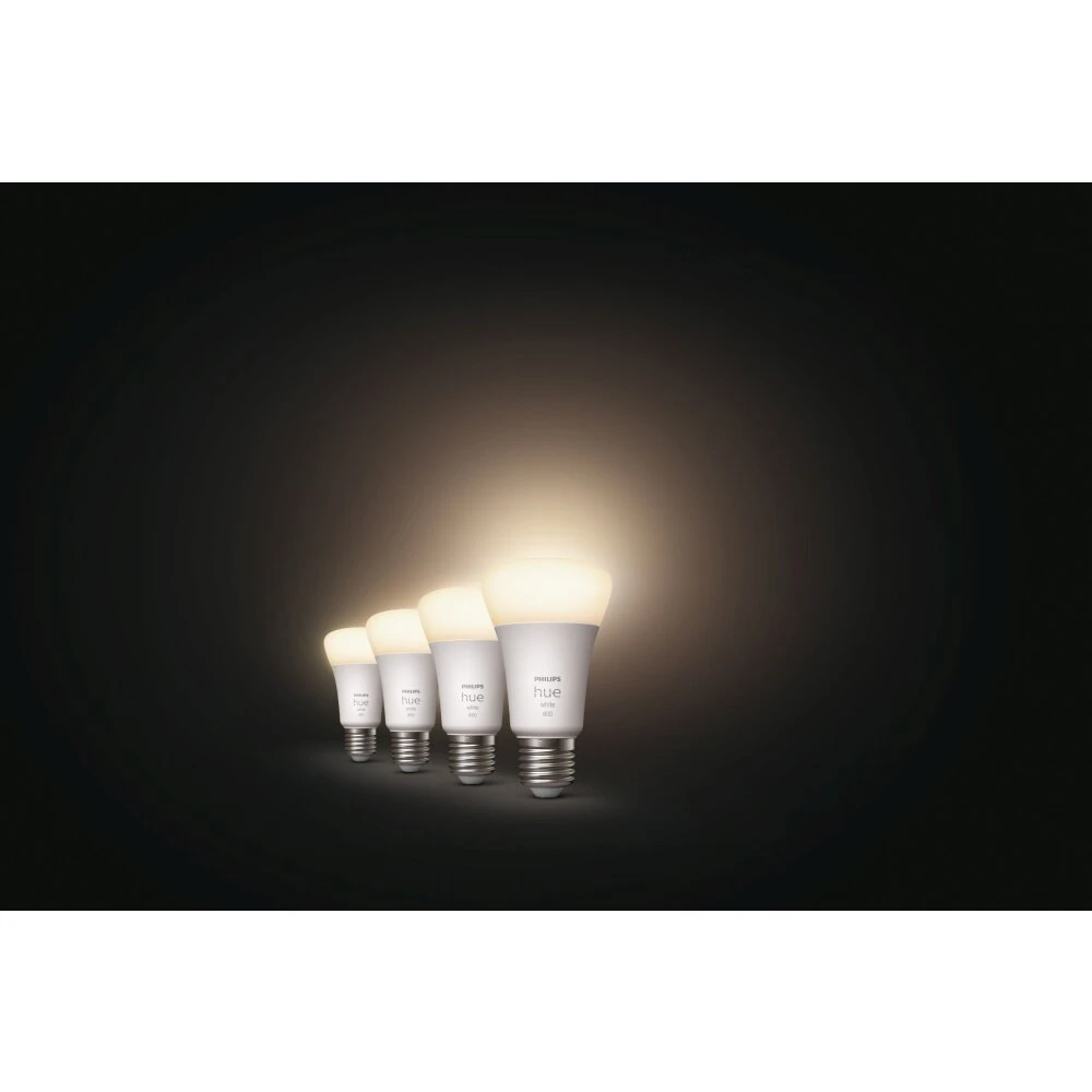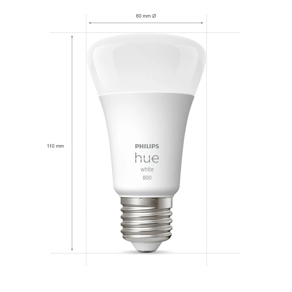 Steuerung über Bluetooth und Bridge; kompatibel mit Amazon Alexa, Apple HomeKit und Google Assistant; entspanntes warmweißes Licht (2.700K); automatische Lichtsteuerung; Steuerung von unterwegs; passend in jede Leuchte mit E27 Lampenfassung