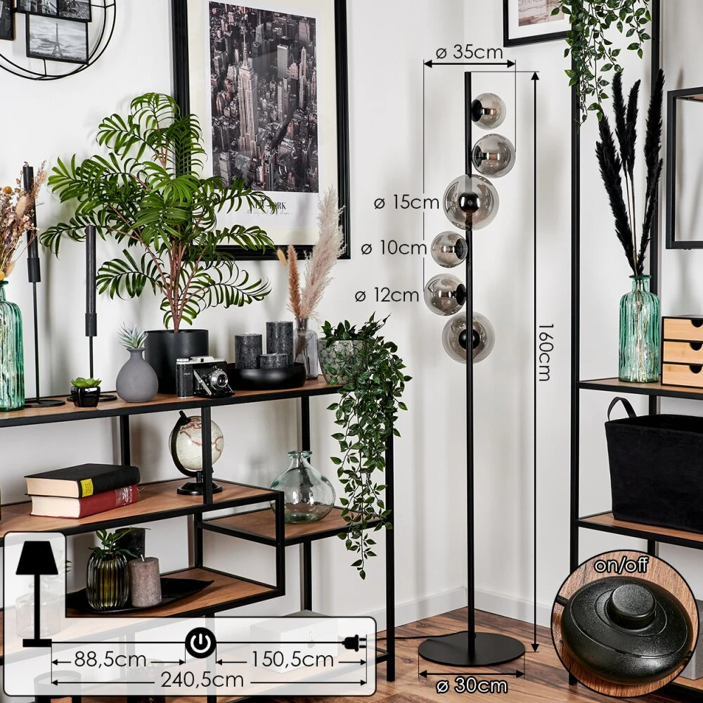 - Besonderheiten: Diese Stehleuchte verfügt über einen Fußschalter am Kabel. Die Länge des Kabels beträgt 240,5 cm.