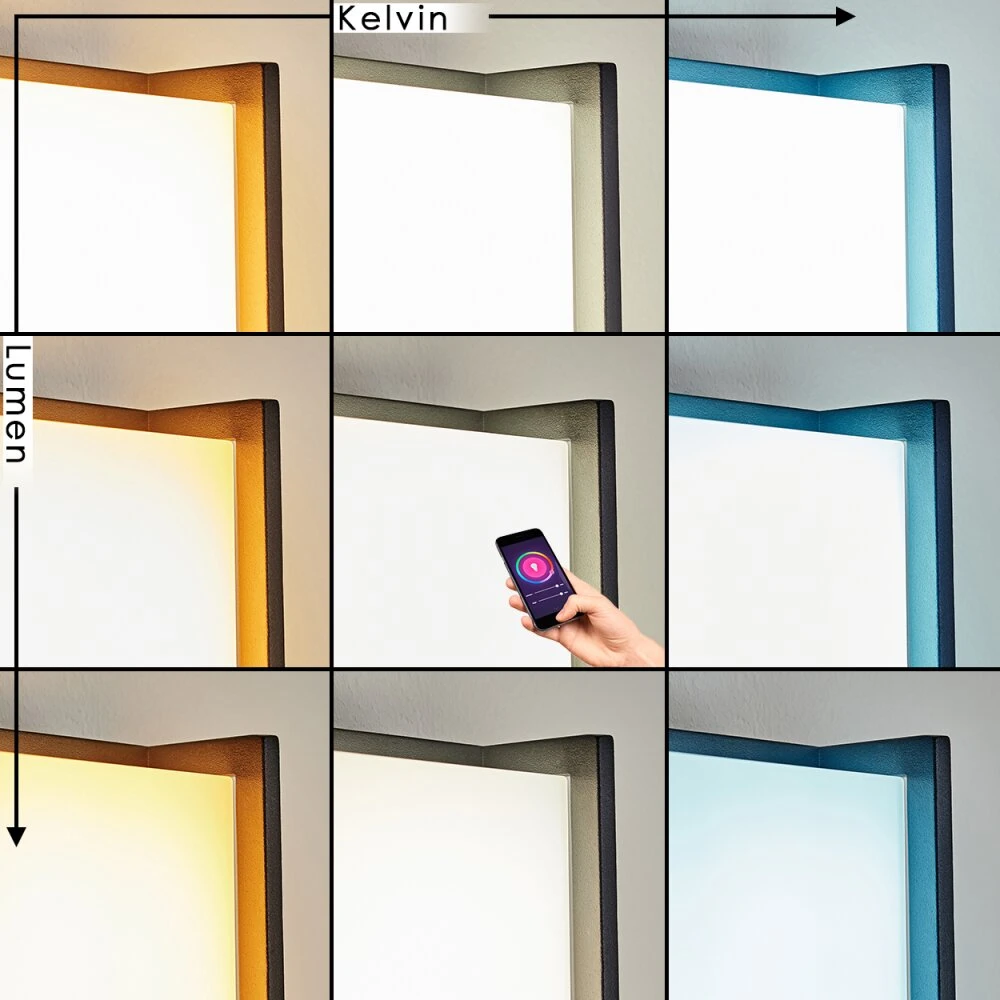 - Mithilfe einer zusätzlichen Fernbedienung (nicht im Lieferumfang enthalten) oder über eine Smart App auf dem Smartphone kann die Leuchte gedimmt und die Lichtfarbe geändert werden.