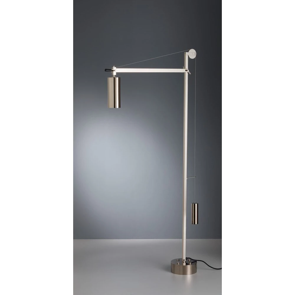 - Diese Stehlampe verfügt über ein Gegengewicht, mit dem sich die Armauslage regulieren lässt.